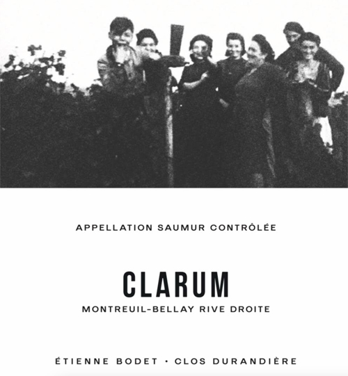 Notes from Etienne: "Clos des Vaudelles covers just under 2 hectares. I decided to vinify this strip of land in two different ways. First, Clos des Vaudelles, with maceration and long aging, like Clos Durandière. I also created Clarum. This Clarum is a tribute to my family. The photo on the label is of the 1947 harvest of the Bodet family on this same Vaudelles terroir. At the time, clairet was the dominant wine production in Montreuil-Bellay. This wine is made from hybrids of Gamay, Cabernet, and Grolleau to produce a simple, easy-drinking wine. I strive for a gastronomic style, juicy and saline, aged in used barrels. Of course, Fleur de Pinot by Sylvain Pataille was a source of inspiration, but I can also mention the rosé from Château Simone. I'm also looking for another winemaking style to break the angular structure of Cabernet Franc through a less conventional approach."