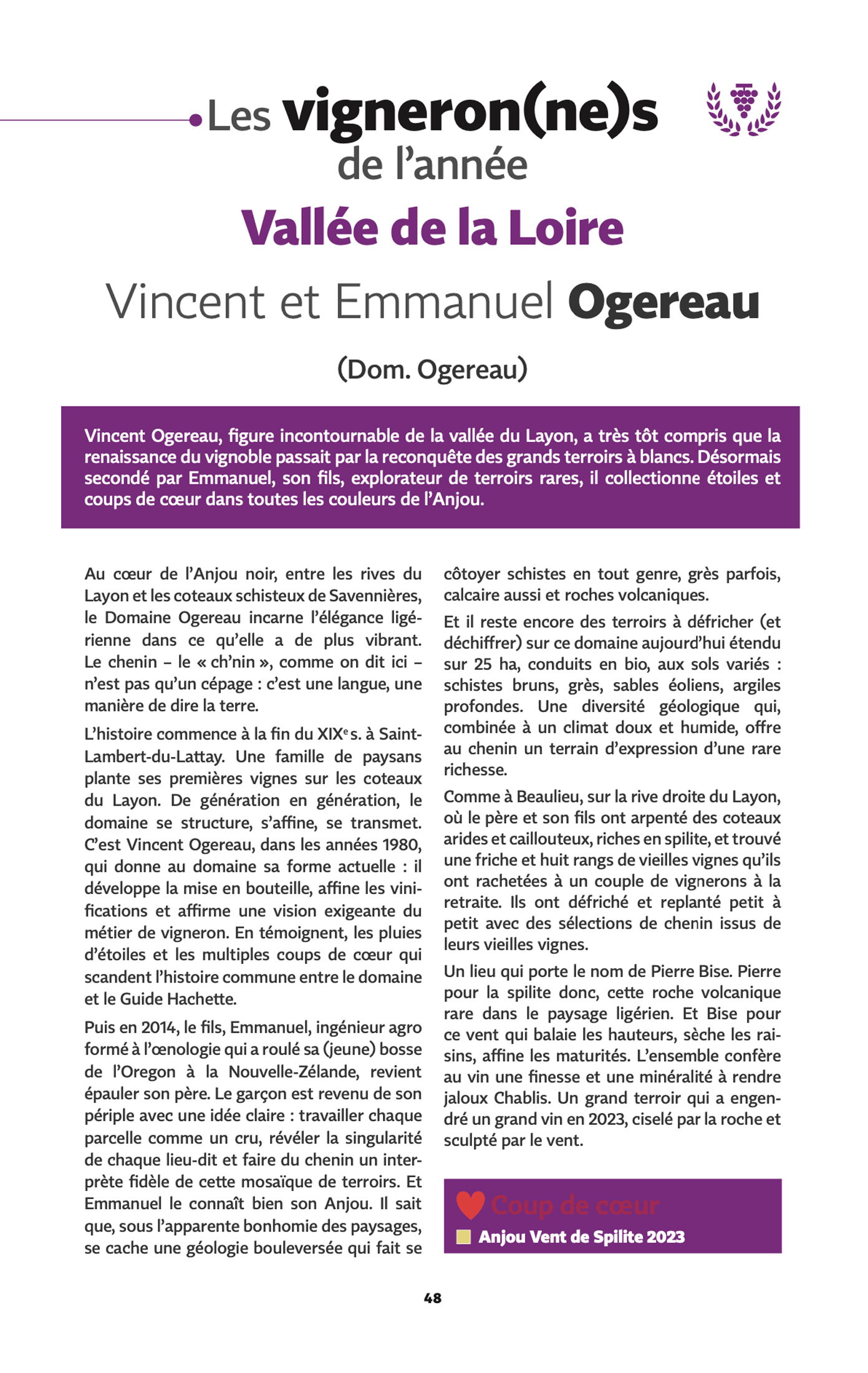 Congratulation to the Ogereau family for being named the Loire Valley’s Winemakers of the Year in 2026 by Le Guide Hachette des Vins!