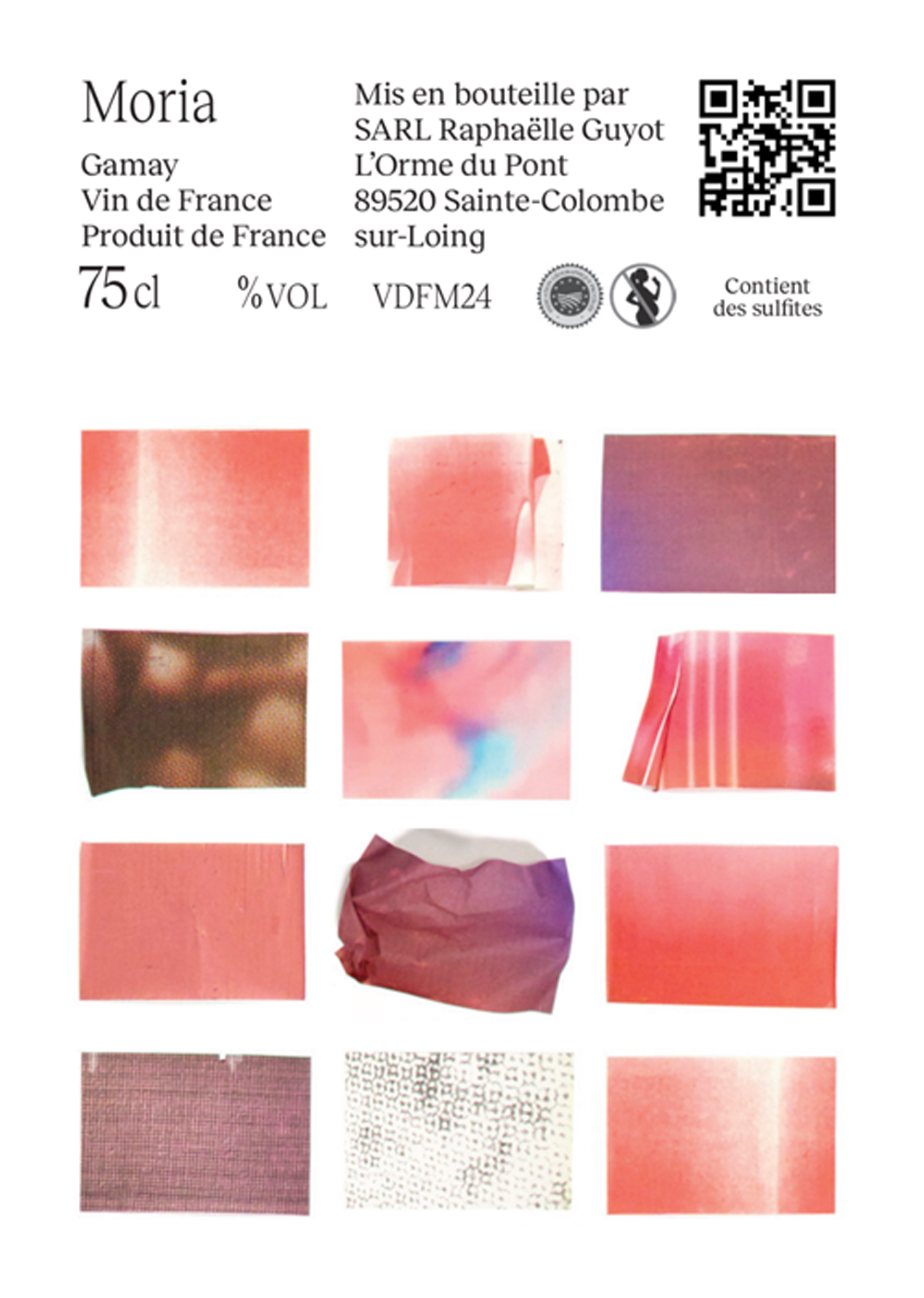 - Vinification: 100% de-stemmed, minimal extraction, 1.5-2-week ambient yeast fermentation and maceration, aged for 10 months in used barrels, SO2 added only after aging (0-15 ppm total SO2 at bottling).