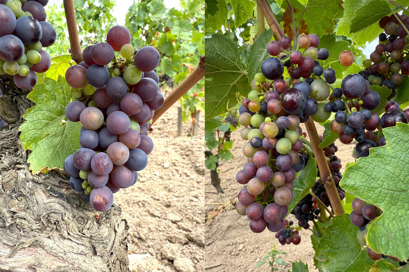 This biotype is indigenous to the region. It produces longer, looser bunches with thicker skins and frequent millerandage (shot berries). It ripens about a week later, reaching phenolic maturity at 0.5–1% lower potential alcohol. Its juice-to-skin-and-stem ratio is lower, and stems lignify poorly, leading to different winemaking choices: at Sérol, no carbonic maceration and only partial stem inclusion.